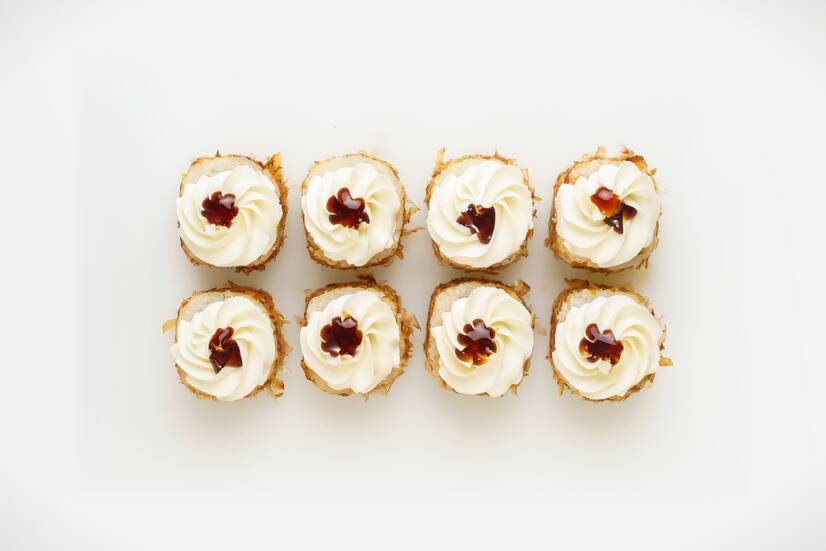 Ніжний крем-сир, креветки-панко, огірок, ароматна стружка боніто та соус теріякі — фірмовий рол із гармонійним поєднанням текстур і смаків.