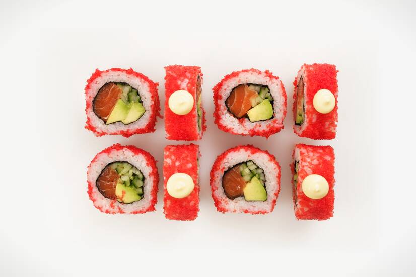Ніжний японський майонез, авокадо, лосось, огірок і тобіко — фірмовий рол із м’якою текстурою та яскравим смаком.