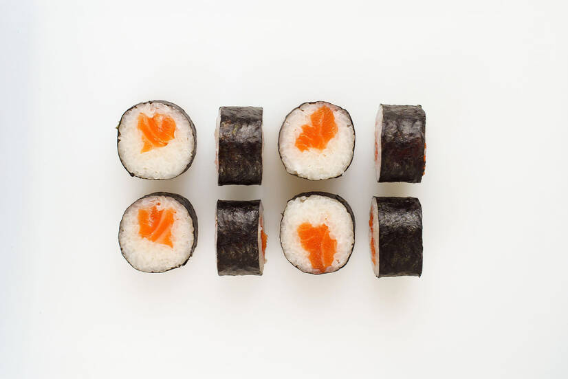 Ніжний лосось у рисі та норі — простий, але апетитний макі для поціновувачів справжньої японської кухні.