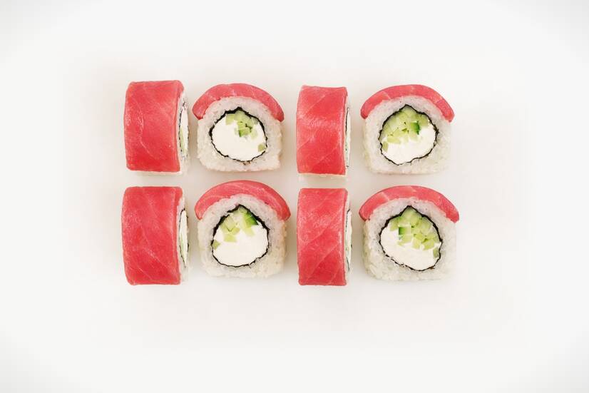 Легендарний рол Філадельфія — ніжний крем-сир, свіжий тунець і хрусткий огірок у кожному шматочку, класика смаку, яку люблять у всьому світі.