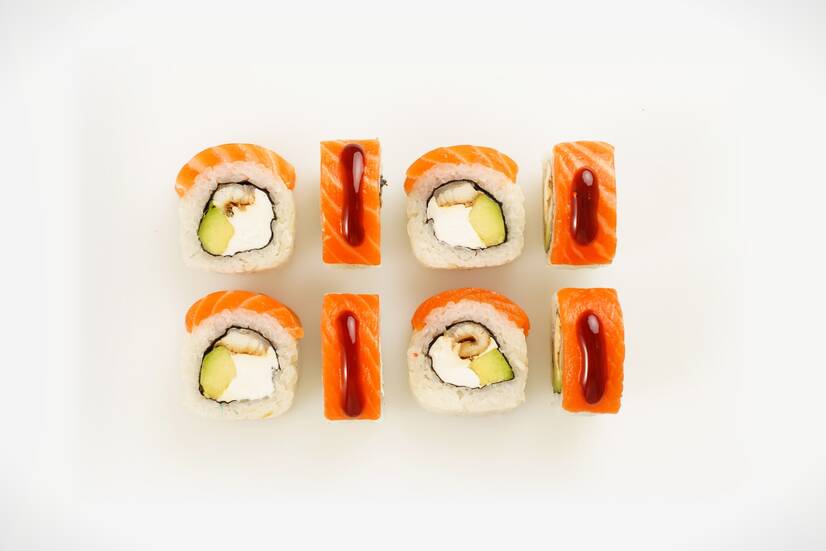 Соковитий лосось і вугор, ніжний крем-сир, авокадо та соус Унагі — рол із насиченим смаком і багатою текстурою, який захоплює з першого шматочка.