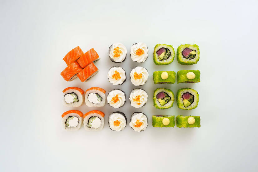 Сет «Ямі-ямі» — 24 шт. справжнього японського смакового свята: ніжна Філадельфія з лососем, соковита Каліфорнія з тунцем і Лава-рол — кожен шматочок дарує захват та насолоду!