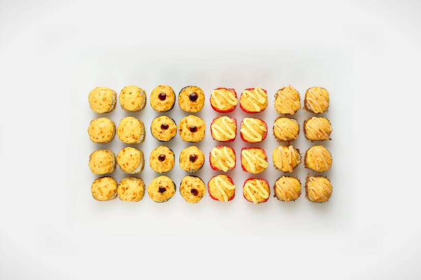 Сет «Хот Ролз» — 40 шт. гарячий набір запечених ролів із золотистою скоринкою: Сирний мікс, Спайсі лосось, Запечений з креветками-панко, Запечений з крабовим міксом, Запечена Лава з креветками — ніжний сир і пікантні соуси дарують неймовірний смак кожному шматочку.